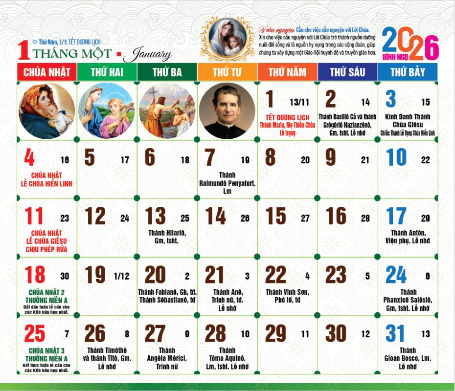 Lịch Công giáo là lịch hàng năm kỷ niệm những ngày và mùa nhất định để giúp chúng ta ghi nhớ những sự kiện quan trọng của Thiên Chúa trong lịch sử cứu thế. Ngày nay, nhu cầu in công giáo năm 2026 ngày càng gia tăng. Vì vậy, bài viết sau đây xin gửi đến các bạn địa chỉ in lịch công giáo 2026 uy tín và chất lượng hàng đầu Việt Nam.